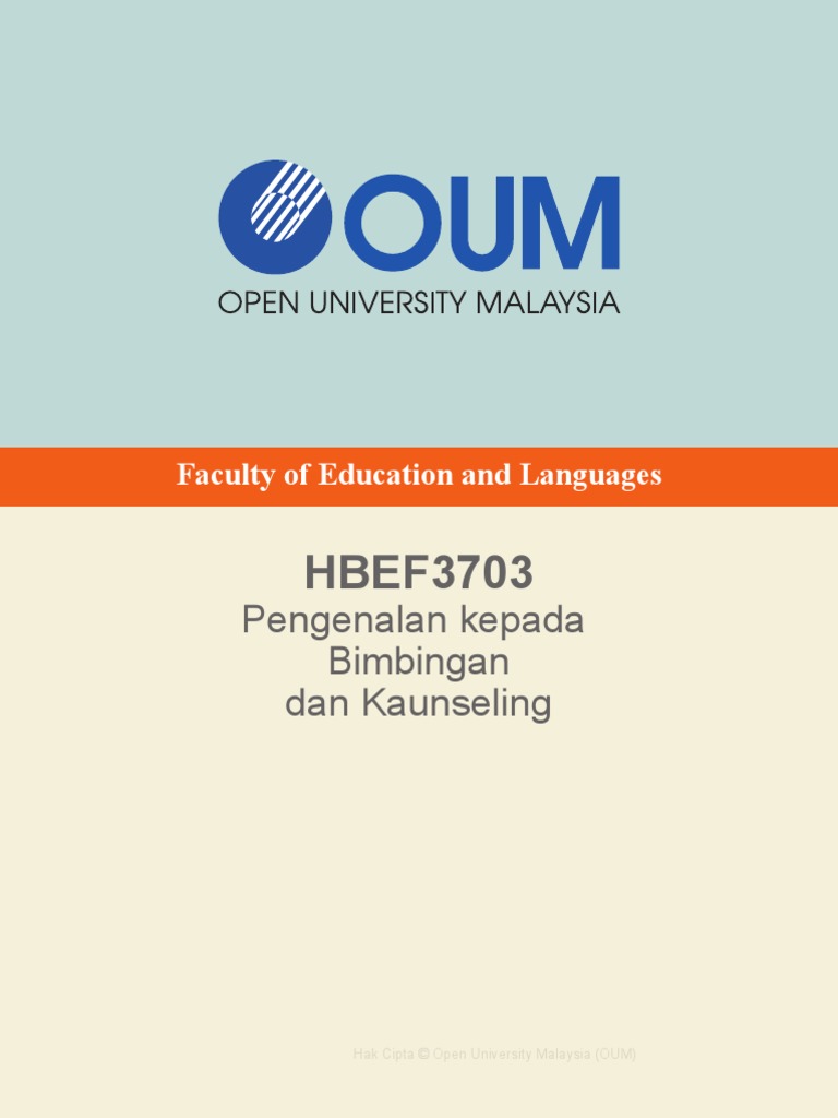 Penyerahan dan penilaian tugasan assignment submission and assessment _ hbef3703 introduction to guidance and counselling. Menolong klien dengan memberi nasihat untuk membuat pilihan sendiri D Menolong klien dengan memberi bimbingan dan nasihat. Hak Cipta Open University Malaysia OUM HBEF3703 PENGENALAN KEPADA BIMBINGAN DAN KAUNSELING Dr Zainal Abidin Ahmad Prof Dr Wan Abdul Kader Wan Ahmad B D Singh.
